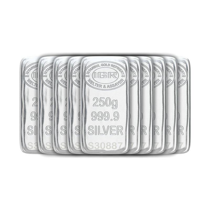 Fiziki varlıklara yatırım yapmak isteyenler için en değerli seçeneklerden biri olan gümüş külçeler, uzun vadede yüksek getiri sağlayan güvenli limanlardan biridir. 10 Adet İAR 250 Gr Gümüş Külçe, toplam 2.500 gram (%99,9 saflıkta) gümüş içeriği ile büyük ölçekli yatırım düşünenler için eşsiz bir fırsat sunuyor.