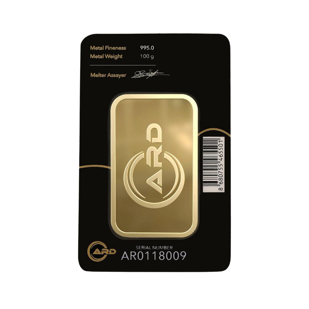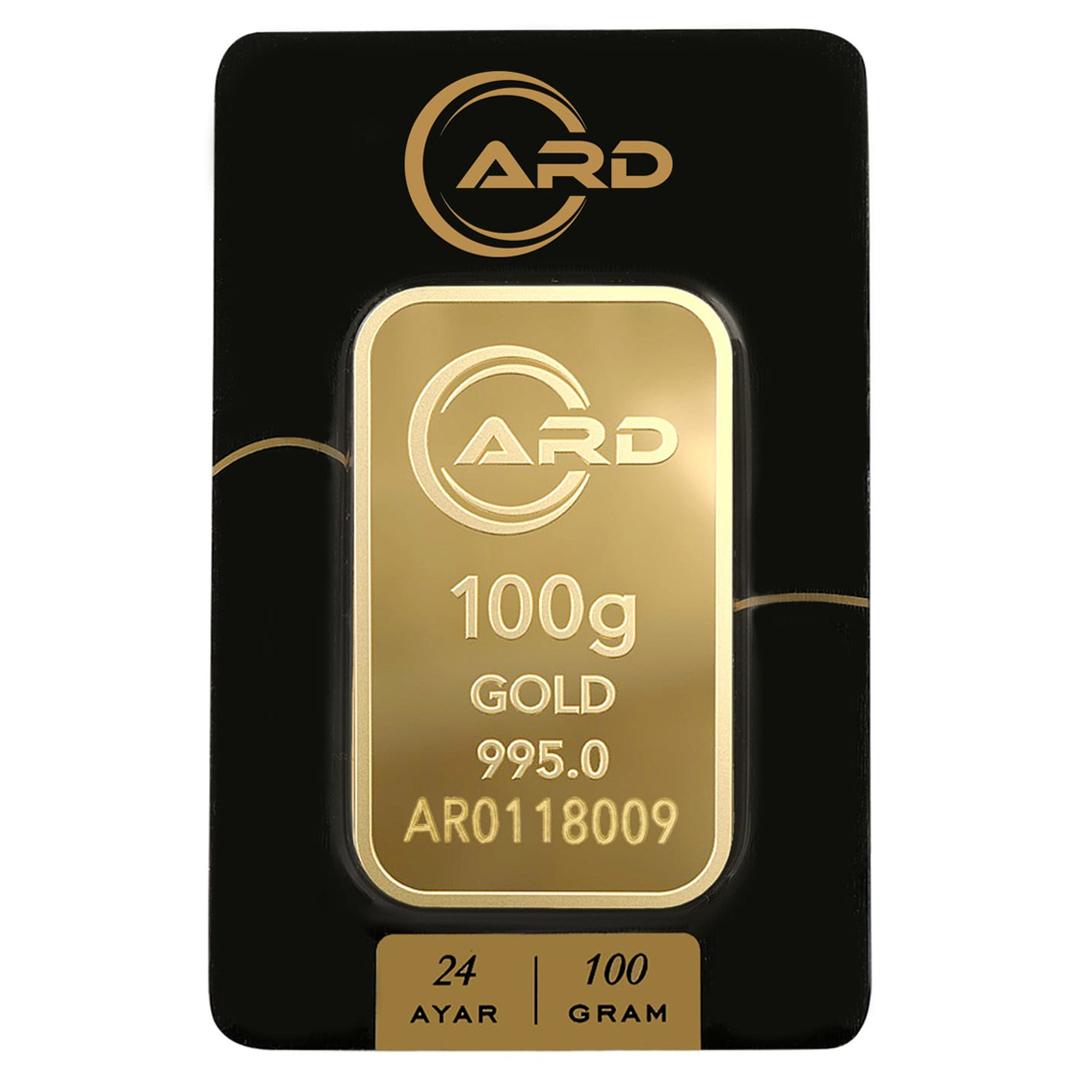 100 Gr 24 Ayar 995 Milyem ARD Gram Altın, yüksek saflığı, dayanıklı değeri ve ARD markasının köklü güvenilirliğiyle büyük yatırımlar için mükemmel bir tercihtir.