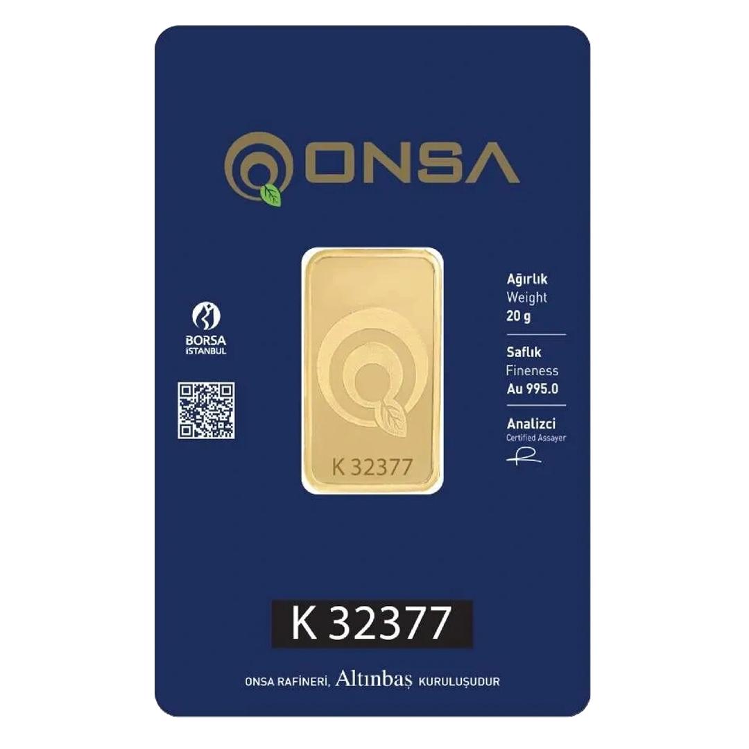 Her Onsa 20 gr altın, özel seri numarası ve hologramlı güvenlik bandı ile birlikte gelir.