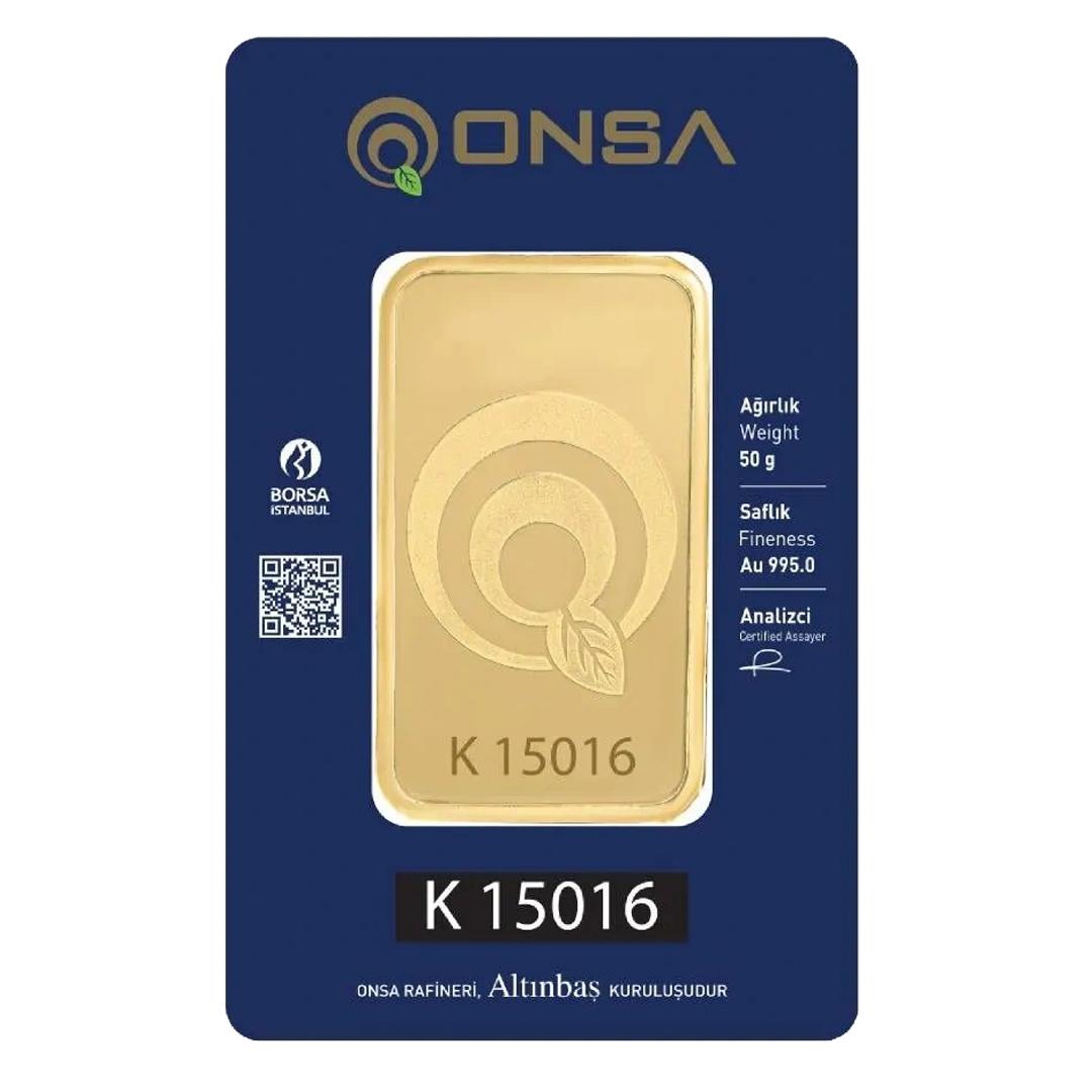Onsa 50 Gr Gram Altın, 995 milyem saflık oranına sahip olup neredeyse tamamen saf altından üretilmiştir.