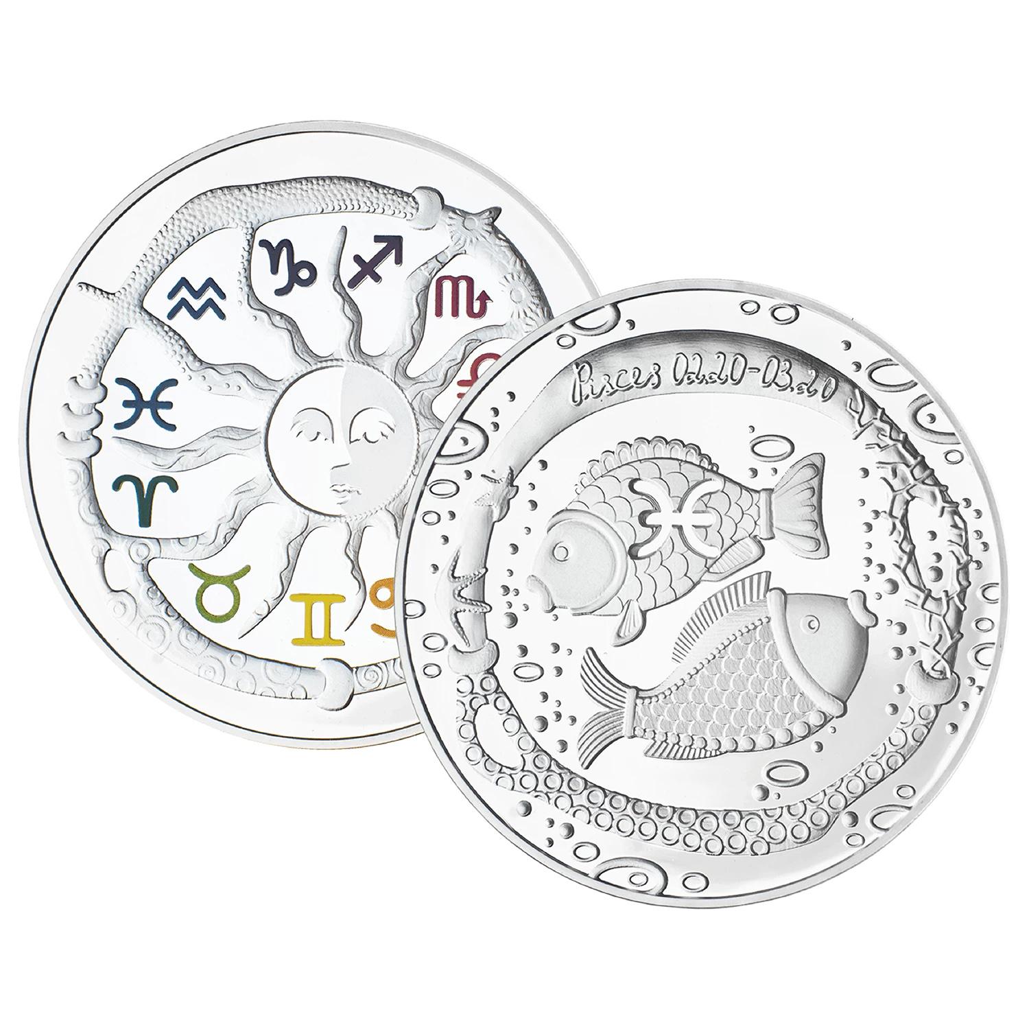 Sikkenin ön yüzünde, Balık burcunun geleneksel simgesi olan iki zıt yöne yüzen balık figürü, yüksek kabartma tekniği ile ince detayları korunarak işlenmiştir. Arka yüzünde ise 999 ayar (%99,9 saflık) gümüş ayar bilgisi, darphane damgası ve dekoratif desenler yer alır.