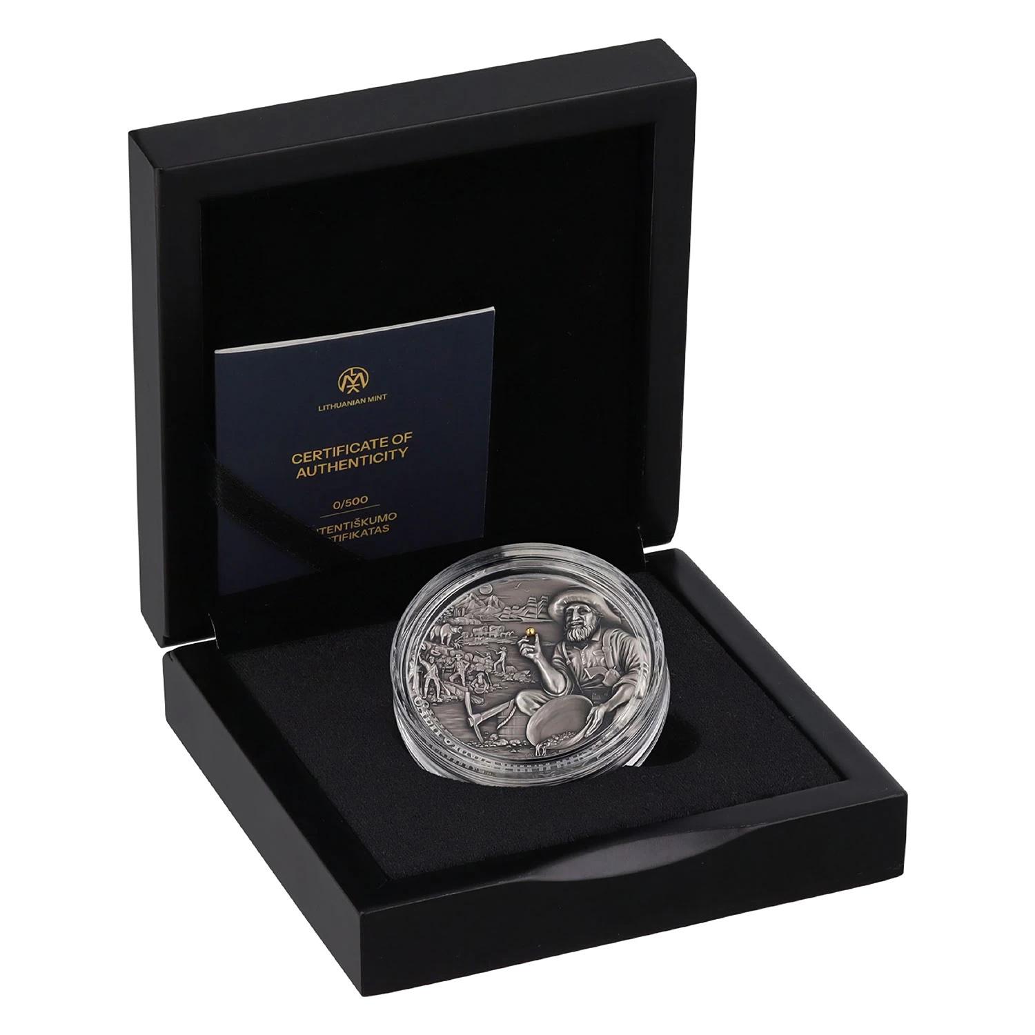 999 ayar (%99,9 saflık) gümüşten üretilen bu nadide koleksiyon parçası, ön yüzünde altın arayıcılarını, kazma ve elekle altın tozlarını ararken gösteren yüksek kabartmalı bir tasarıma sahiptir. Arka yüzünde ise ayar, ağırlık bilgisi ve dönem ruhunu yansıtan detaylı gravürler yer alır.