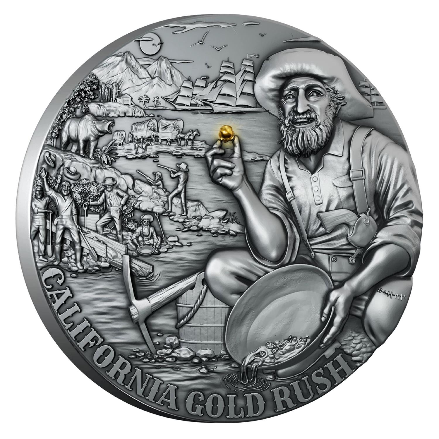 Kaliforniya Altına Hücum 999 Ayar Gümüş Sikke Coin, 1848-1855 yılları arasında dünyanın dört bir yanından binlerce maceraperestin Amerika’nın batısına akın ettiği efsanevi “Gold Rush” dönemini, saf gümüşün asaleti ve ince işçilikle buluşturuyor.