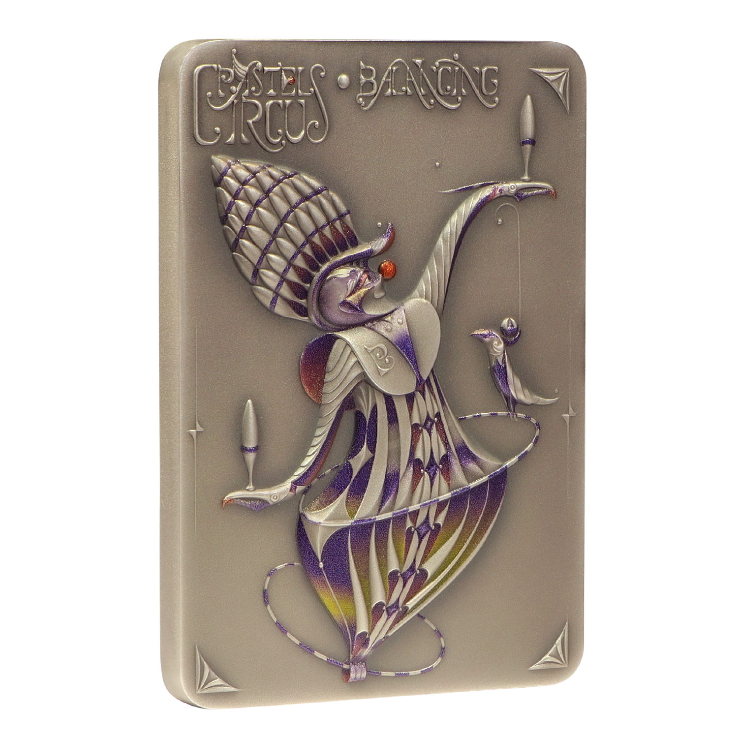 Sikkenin ön yüzünde, sirkin renkli atmosferini ve denge sanatçısını betimleyen yüksek kabartma detaylar yer alır. Pastel renk dokunuşları, sahneye sıcak ve nostaljik bir hava katar. Arka yüzünde ise gümüşün ayar ve ağırlık bilgileri net şekilde işlenmiştir.